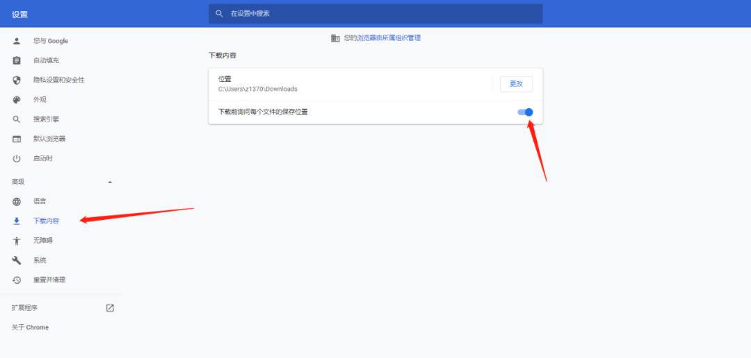 △检查是否开启“下载前询问每个文件保存位置”