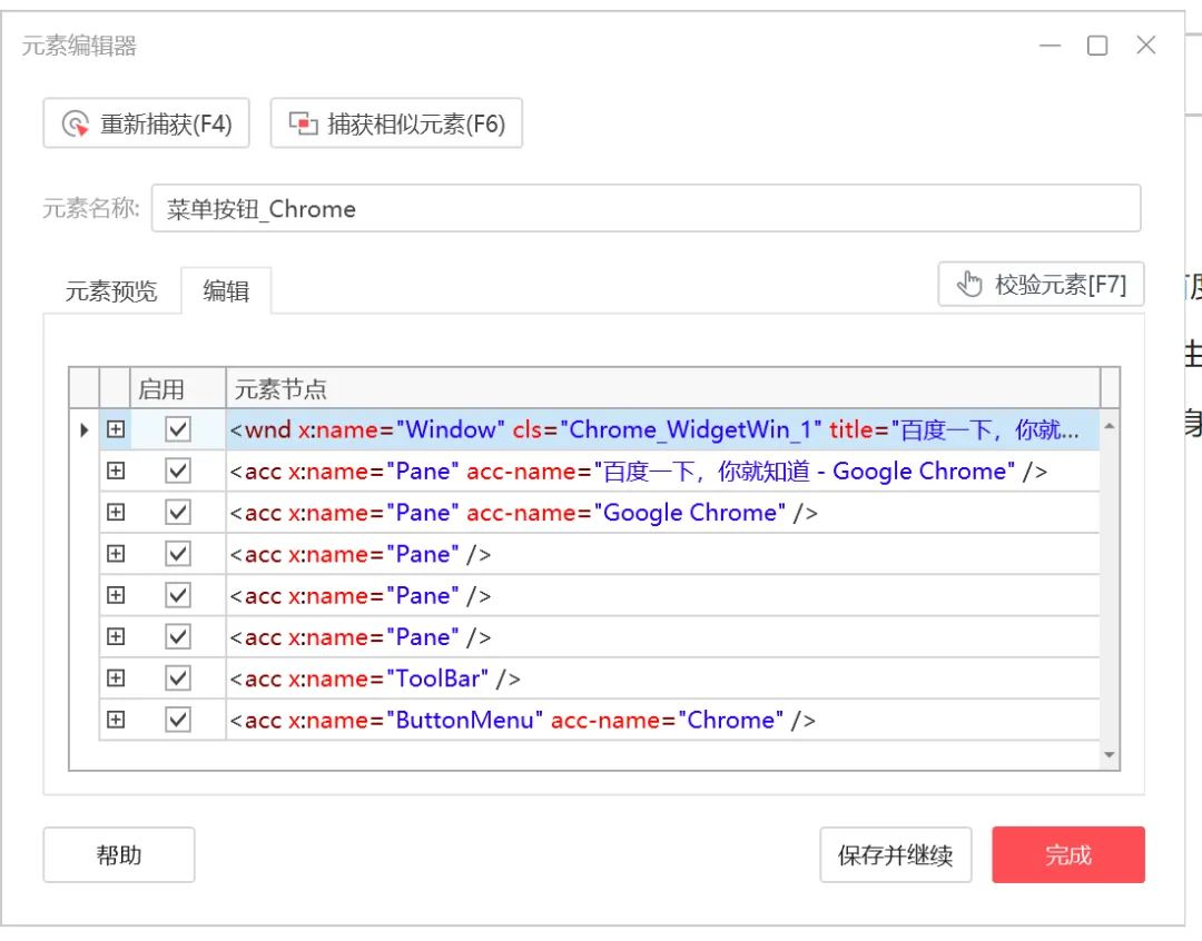 Windows 元素的元素编辑界面: