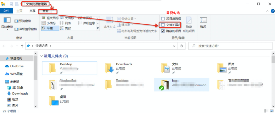 △检查是否勾选【文件扩展名】