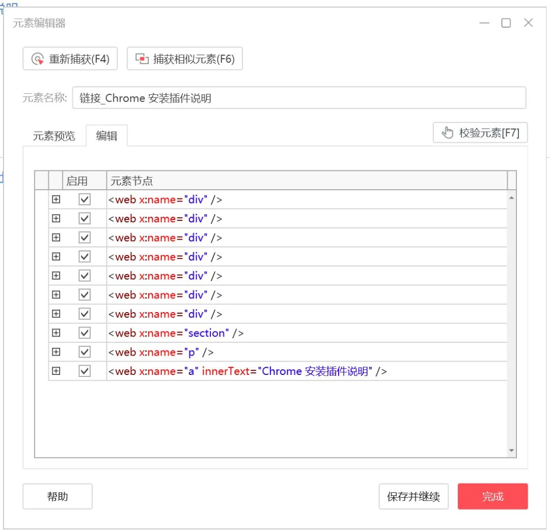 Web 元素的元素编辑界面: