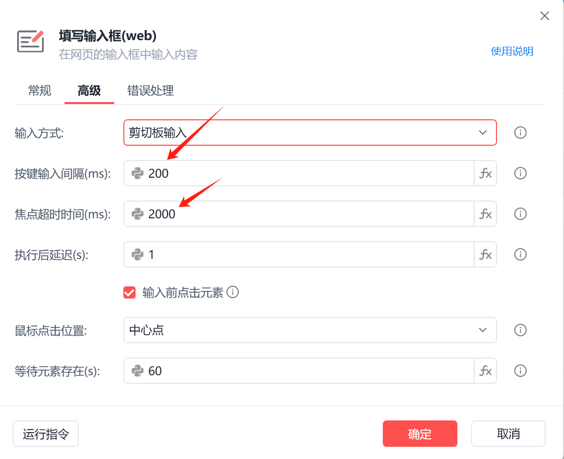 填写输入框指令一台电脑上在谷歌浏览器运行后,出现网页全选,无法继续运行,但是用另一台电脑在火狐浏览器上运行后,正常输入内容,尝试了多种办法,等待指令、等待输入框出现指令、高级设置按键输入间隔延长,焦点超时时间延长,这些办法都无法解决,谷歌浏览器打开的网页还是全选状态,不知道为什么会这样?有其他办法可以解决吗?