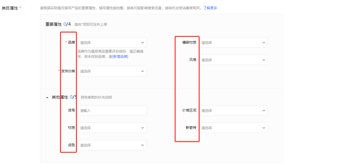 淘宝上架属性内容填写