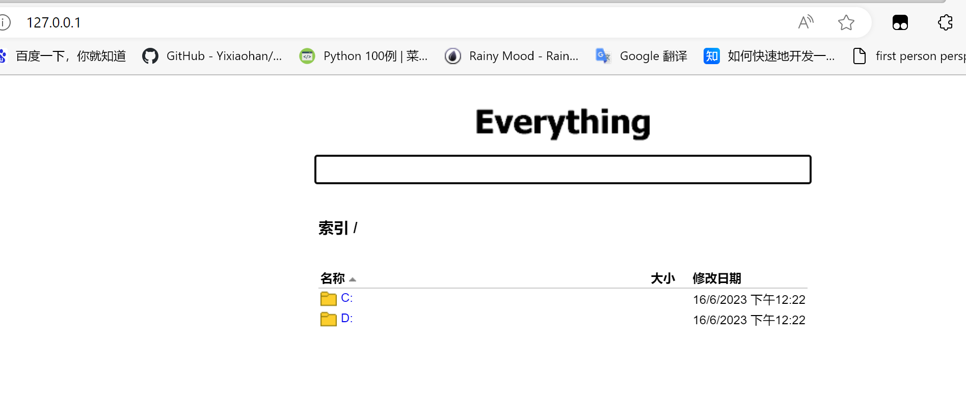 4.访问地址后,可以看到everything已经成功打开一个网页版本everything,可以通过在上面搜索栏,直接输入想搜索的文件名,就可以快速获取到文件的搜索结果,效果和桌面软件的完全一致: