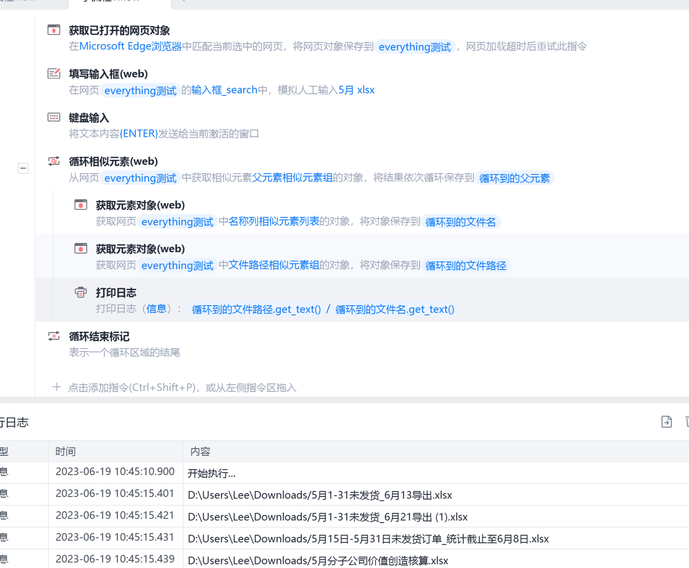 当everything变成网页版后,那么操作网页自动化这一步,就是RPA最擅长的了,可以开始思考如何用影刀对everything进行稳定的自动化操作:
