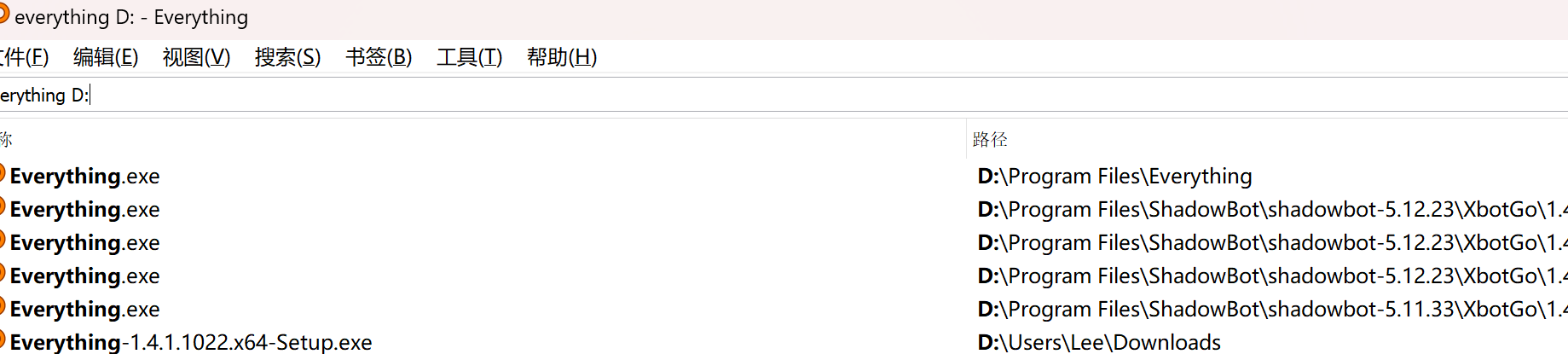 在这里介绍一款Windows系统上很好用的文件搜索软件--Everyting,它可以实现毫秒级别的快速搜索到电脑上的任意文件名称及其路径: