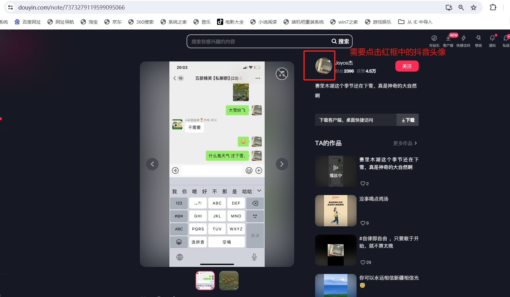 这条链接中的抖音头像无法点击