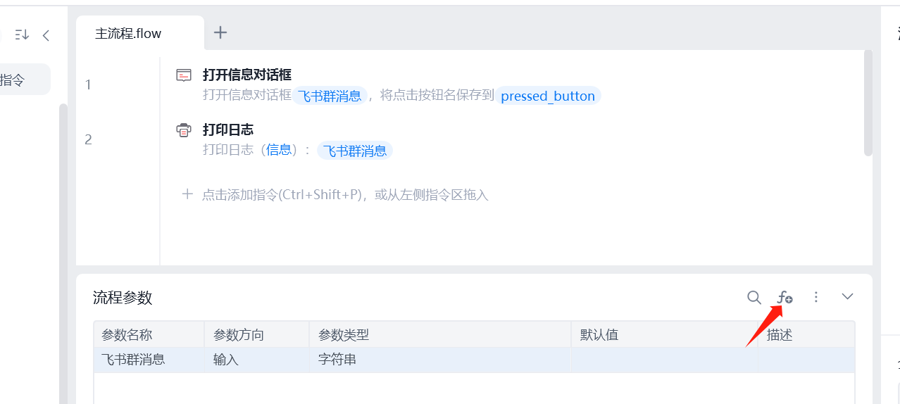 动动小手,即可搭建简单的接收飞书群(内部群和外部群)@我的消息-同发送HTTP请求调度启动影刀应用-通过参数将消息内容传入应用内部机器人