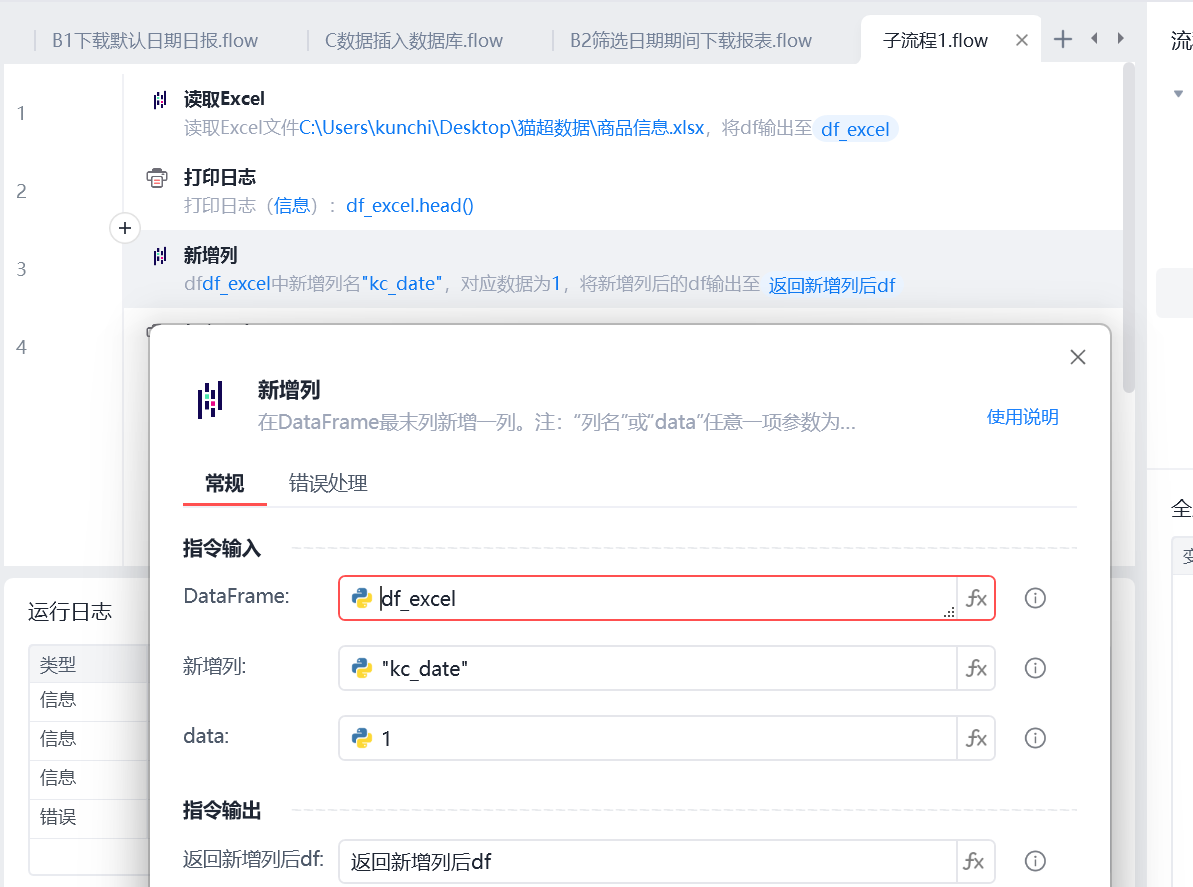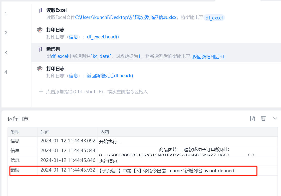 读取excel文件至 DataFrame对象后,尝试新加一列。执行时一直显示报错 name"新加列名" is not defined.