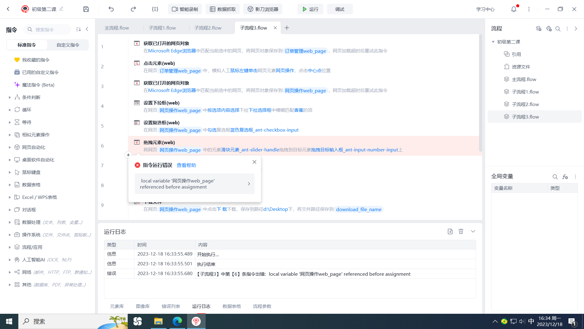 无法从第6步直接开始执行,但是电脑页面已经打开在'网页操作web-page“,却无法执行。