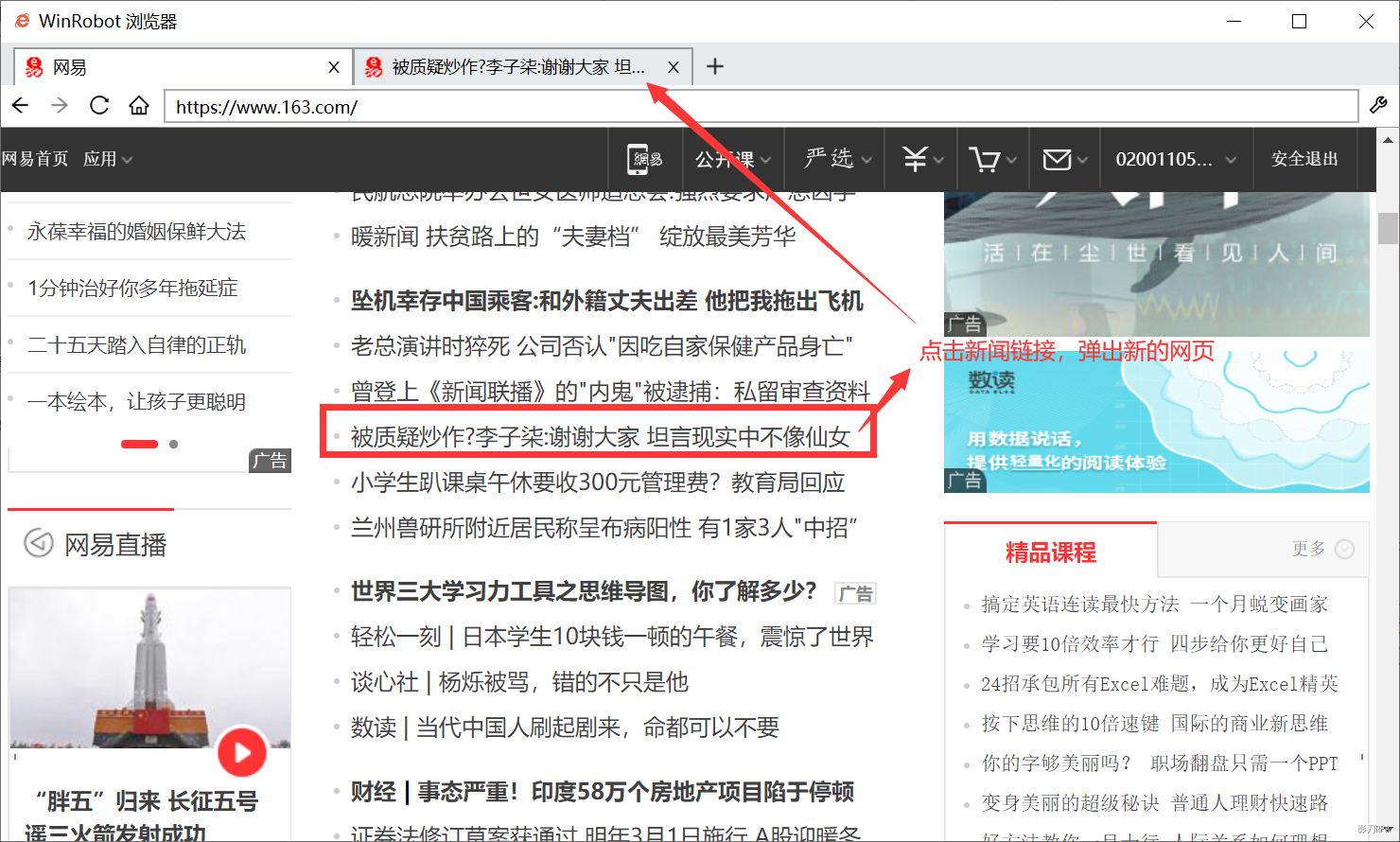 在当前网页点击网页链接,弹出新的网页