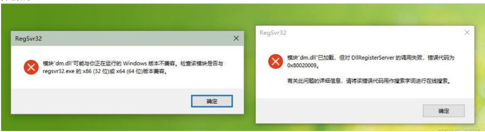 win10注册大漠插件dm.dll异常处理方法: