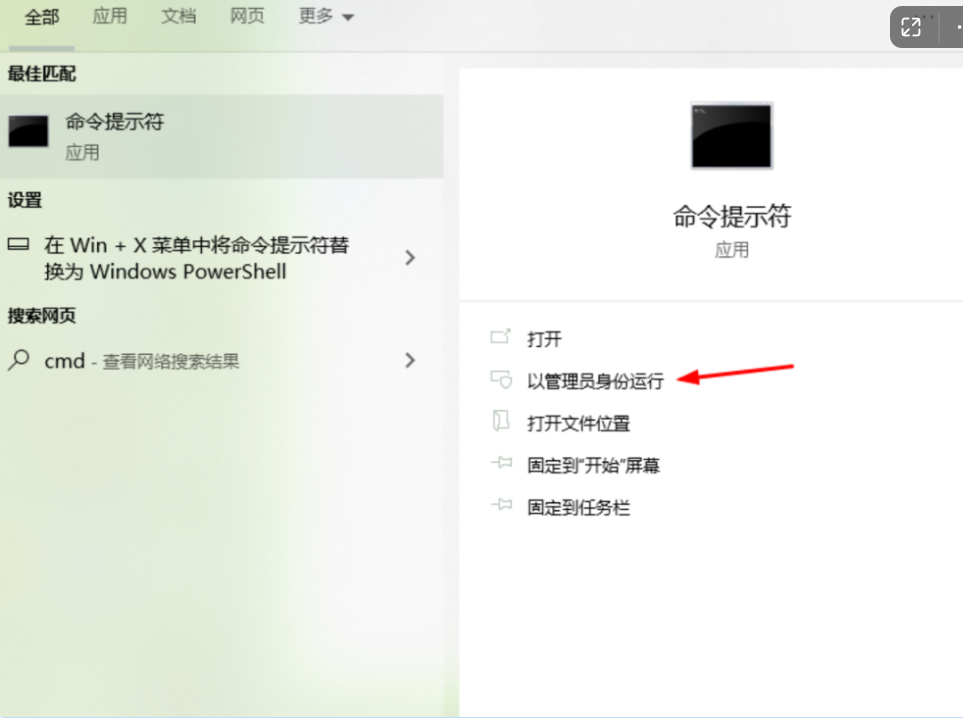 第三步,搜索输入CMD 以管理员