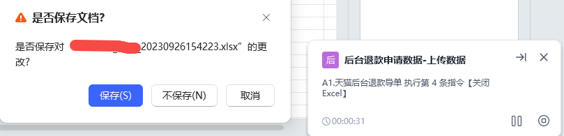 每次结尾都是保存了表格并且进行关闭,但偶尔会卡柱,第二次运行的识货 就卡在保存这里,关闭所有表格并且结束进程,没办法跳过这个保存吗