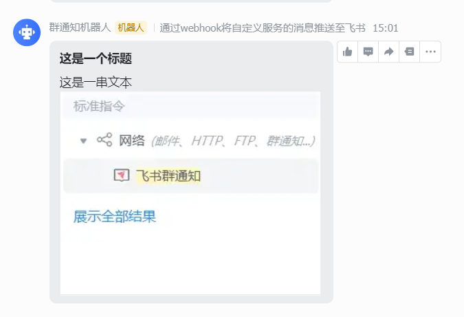 send_post(webhook_url,app_id,app_secret,sign,content)实际的运行效果:
