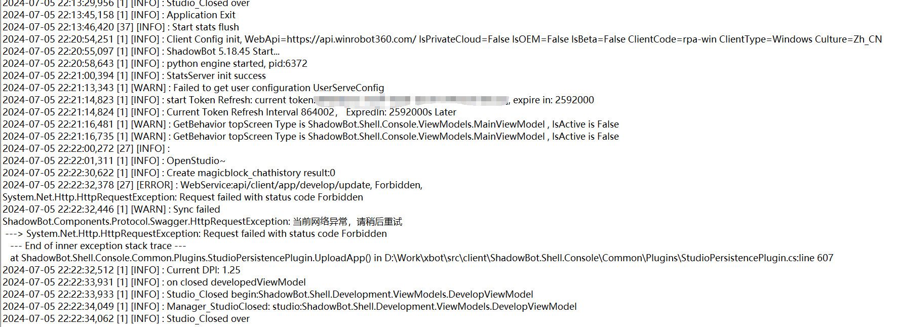 显示网络异常如下图,日志截图如下: