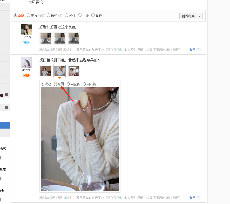 怎么获取淘宝评论区的原图链接,我循环相似元素都是40*40的尺寸