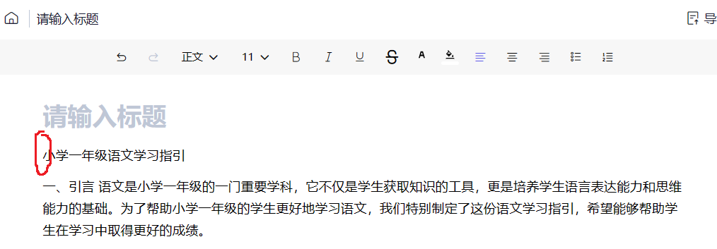 在网页的文档里,如何让鼠标点击到“小”字的前面内(红色圈的位置)