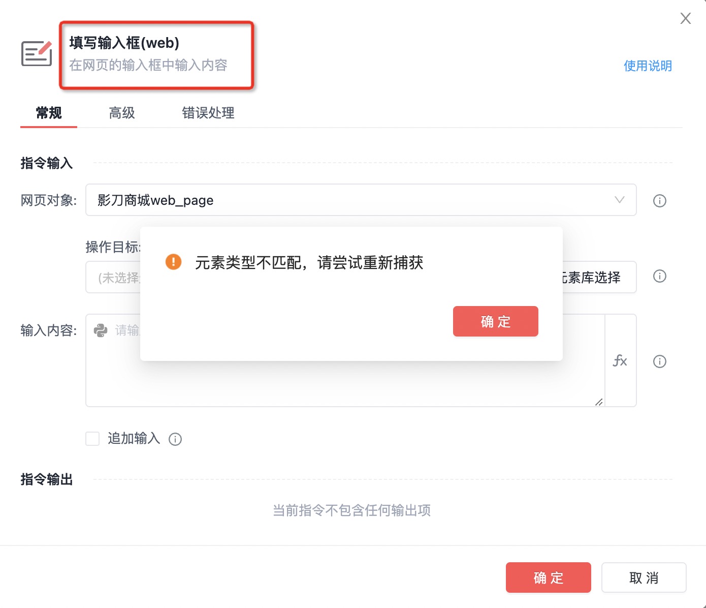 捕获输入框,捕获成功校验也成功,但是返回一直提示元素类型不匹配