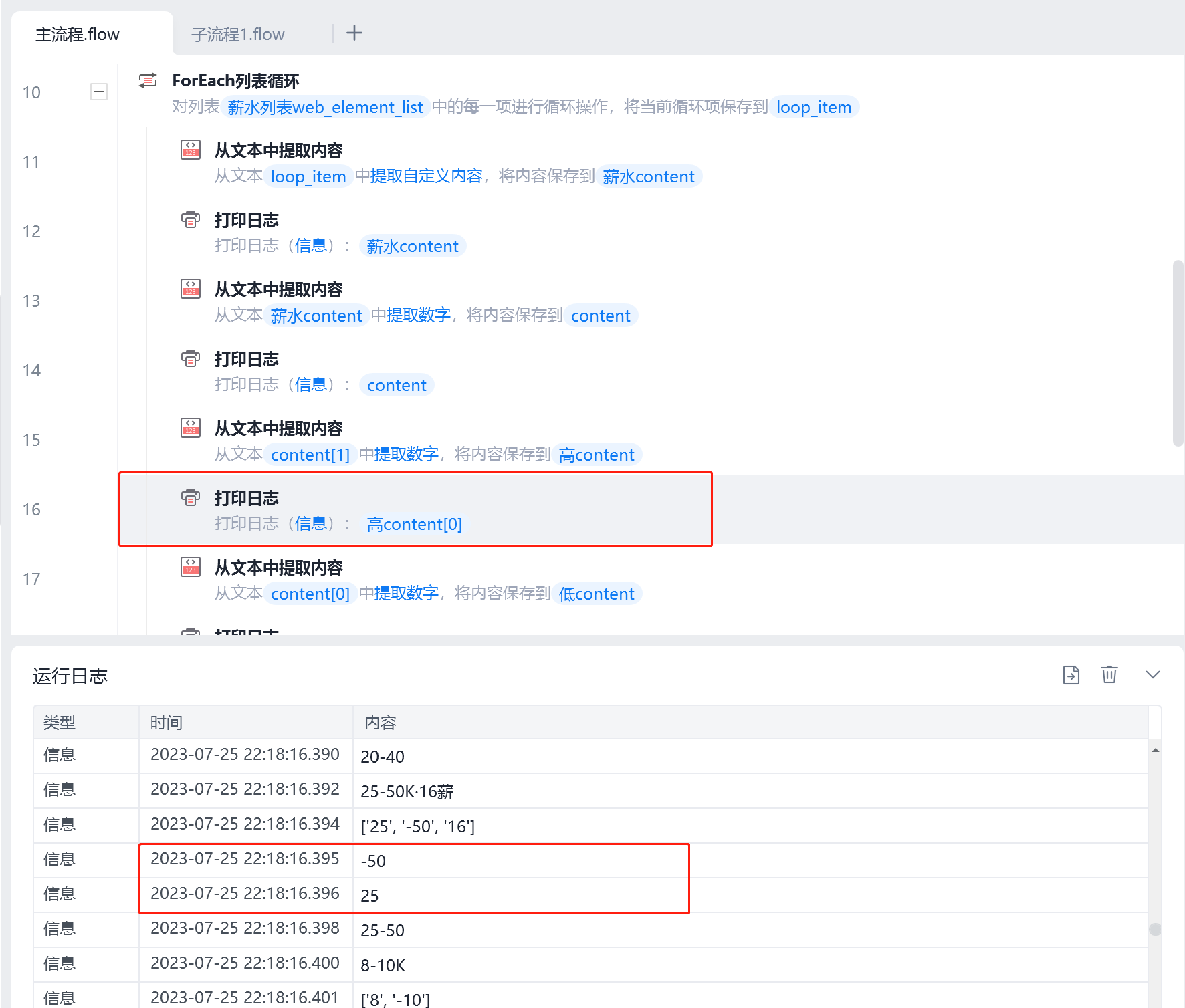 1,想问为什么打印日志选择contant0时,会提取出数字,而选择就选择contant时,就只会出现文本模式?