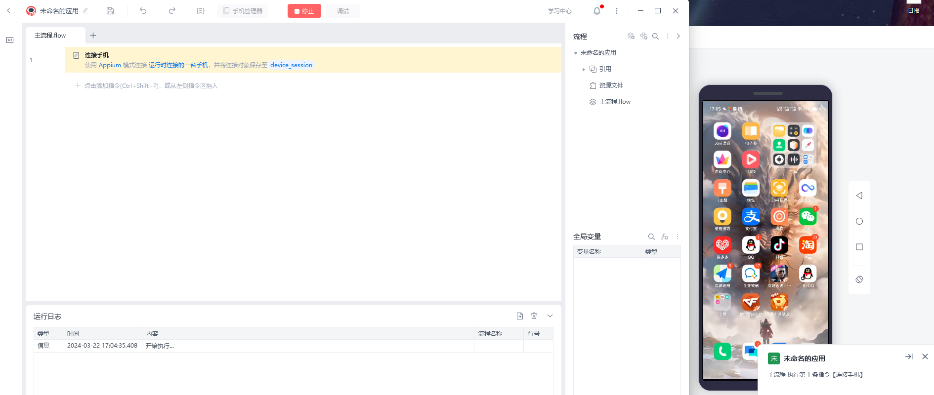 可以连接到右边的手机屏幕,但是左边的流程连接手机一直有问题,还有那个插件老是自己弹出来