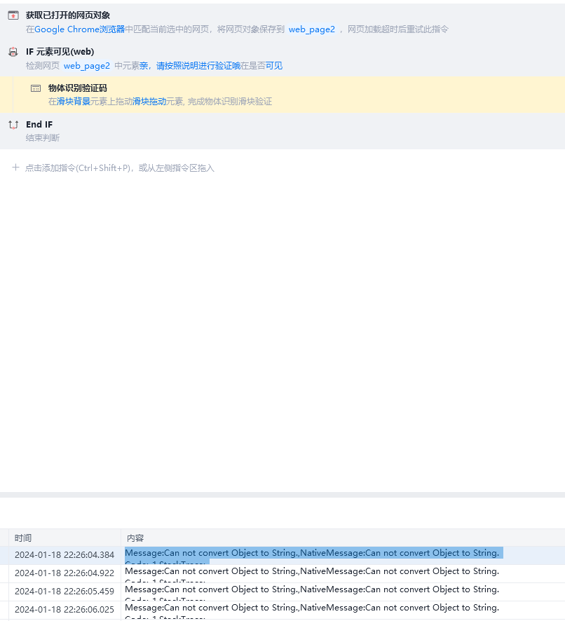 Message:Can not convert Object to String.,NativeMessage:Can not convert Object to String.