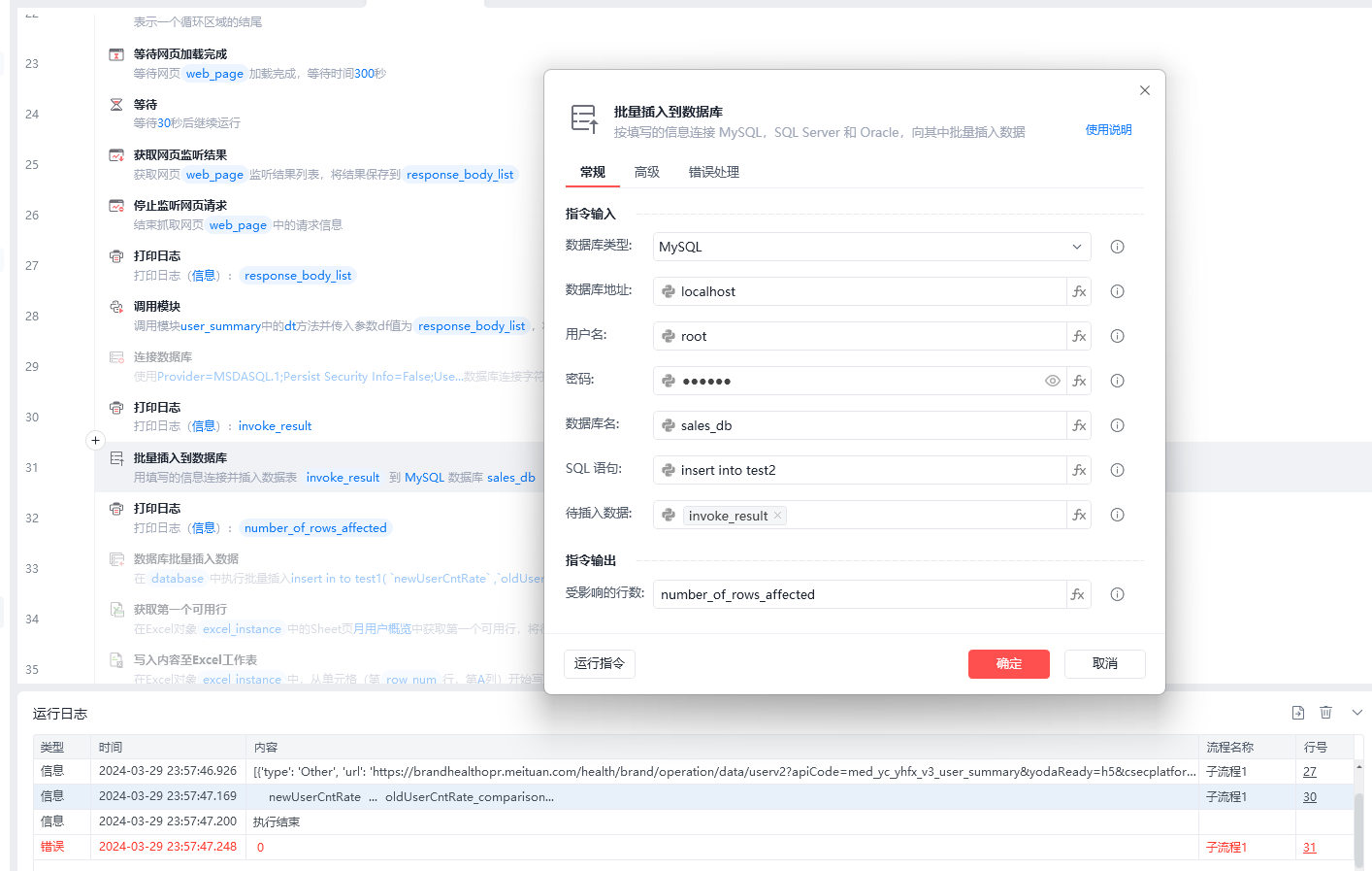 打印的日志是我处理过后的数据,但存储进数据库显示0,数据格式如下: