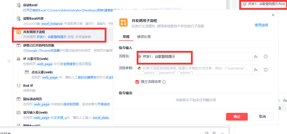 用谷歌搜索,谷歌会经常跳出登陆提示,调用并发子流程却不起作用,哪位老师帮看一下,是什么原因,谢谢