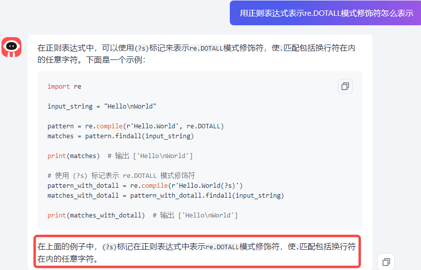 GPT给出的是Python代码,那么怎么把它变成正则表达式呢?别急,让GPT持续输出!