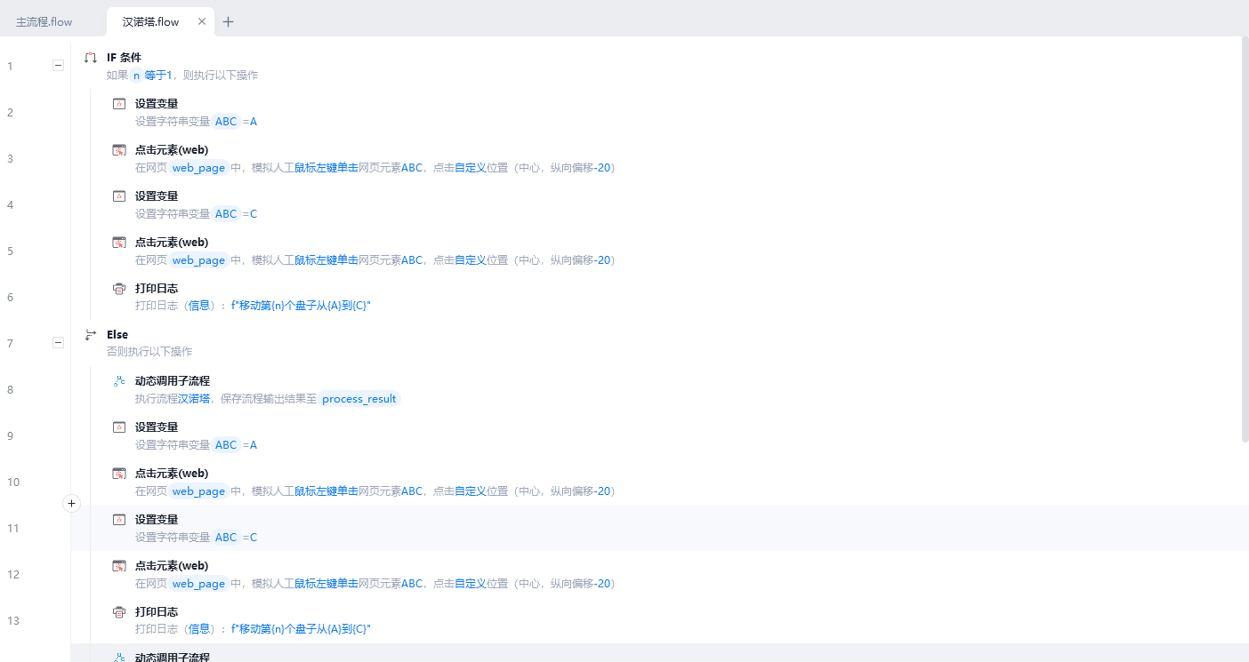 汉诺塔游戏是python递归的经典案例,发现影刀商城上也有这个游戏,我也试试使用影刀实现这个递归的过程,