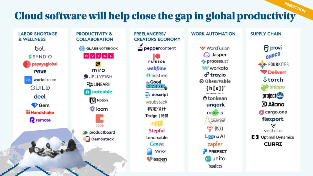 在工作流程自动化方面,我们看到了 Zapier、Leena AI、Salto、Jasper 等市场领导者出现。