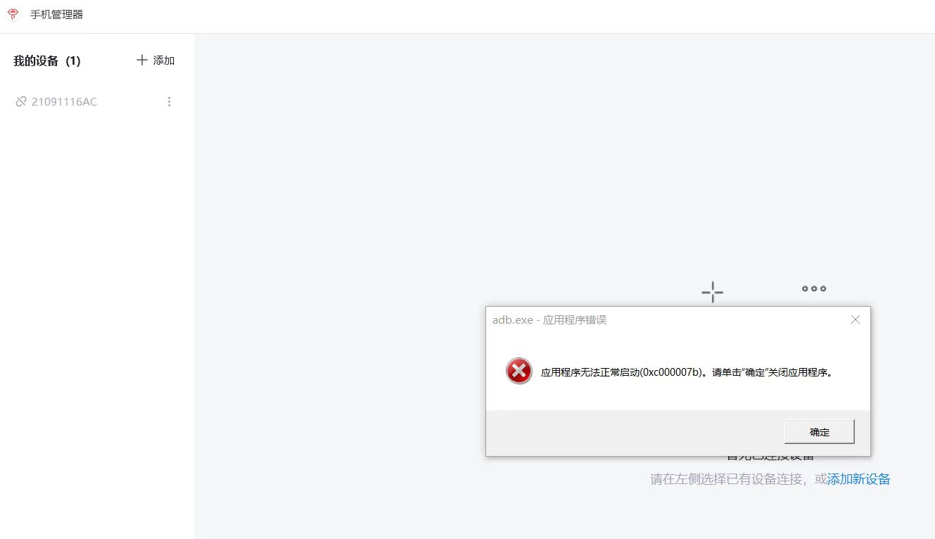 链接手机的时候,提示应用程序无法正常启动(0xc000007b)。请单击”确定”关闭应用程序,请问如何解决