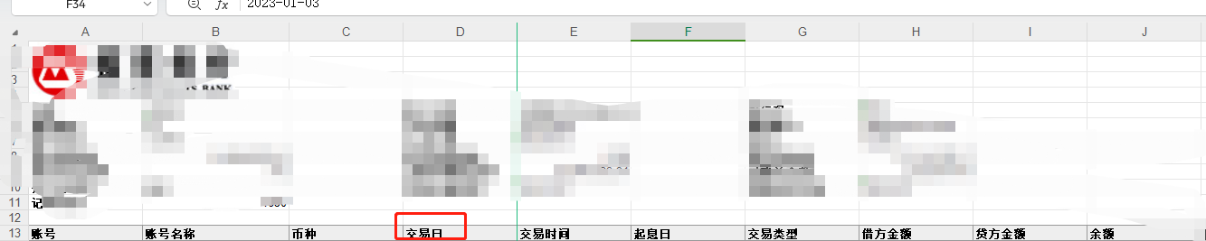 读取表中单元格含有【付款日期或者交易日】所在的行数和列数;(有其中一个关键词就可以)