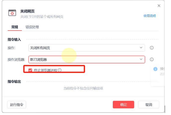 因为影刀浏览器的特殊性,关闭网页的时候如果勾选了终止浏览器进程会导致下次打开网页不保持登录状态