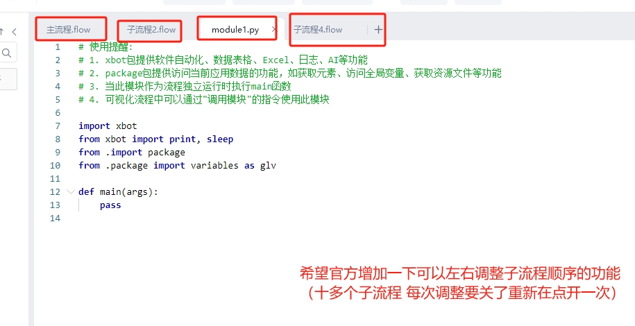 希望官方出一个可以左右调整子流程顺序的功能 方便管理和使用
