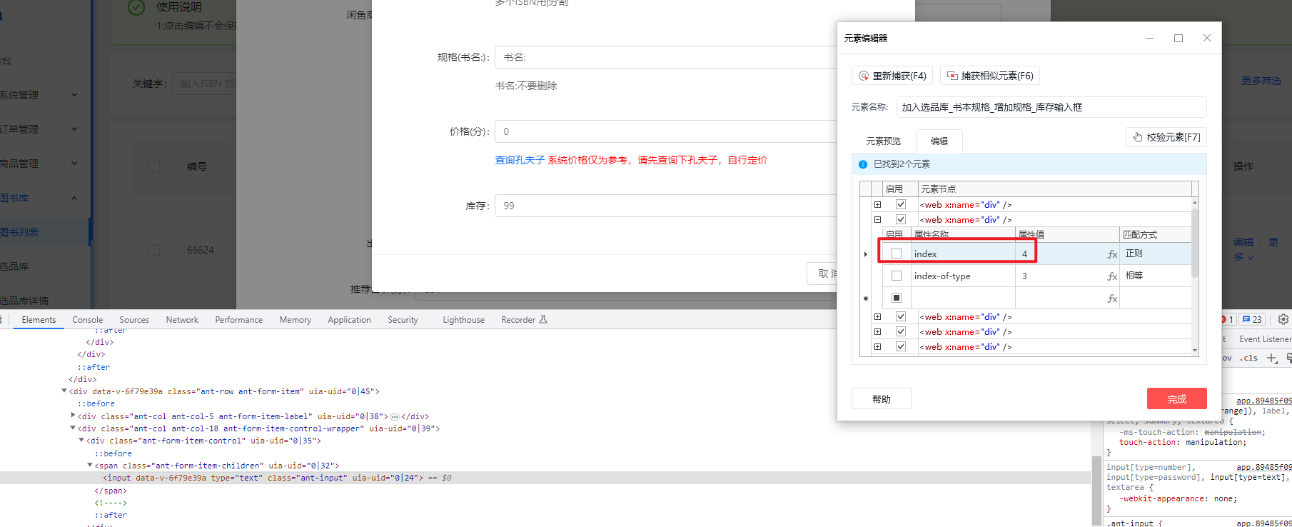 但我只想保留index=4的元素,于是尝试使用正则来匹配index的值,结果获取不到任何元素,请问是元素编辑不支持数字正则还是书写有误