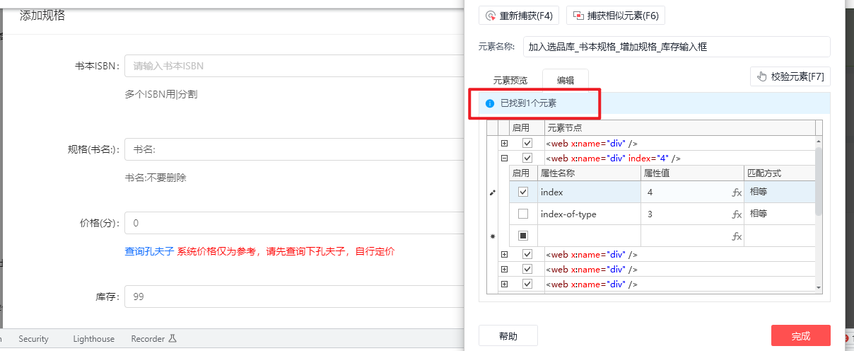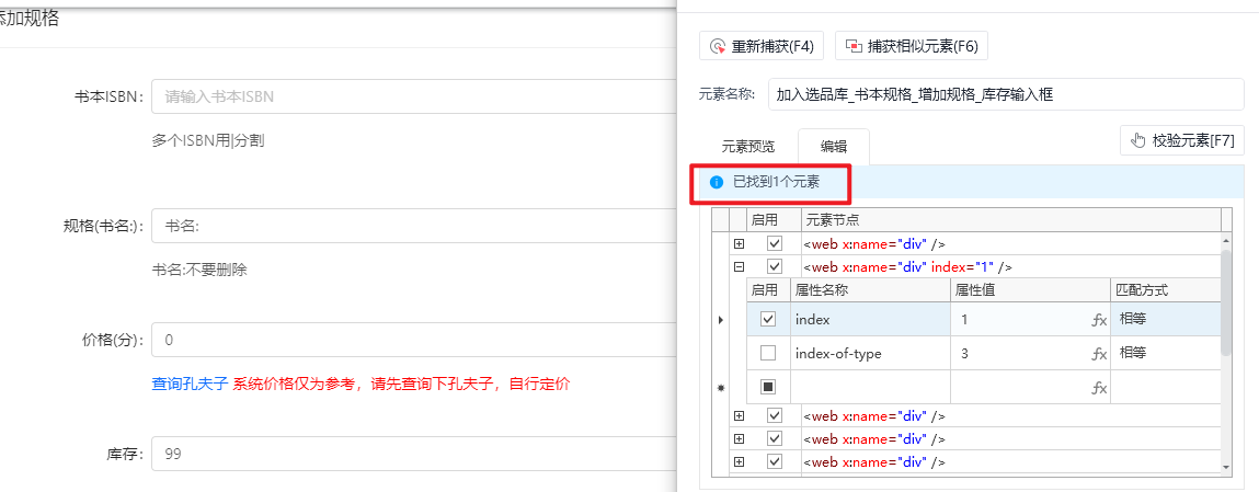 如图,当不勾选index属性时,会匹配到两个元素,分别为index=1和index=4获取到的元素