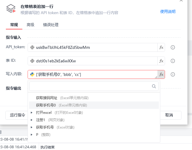 维格表格中 ,获取手机号0是变量 用py表达式写入维格表格中 的不是变量的数值 而是 直接写入"获取手机号0"到表格中, 要怎么样才能写入变量?