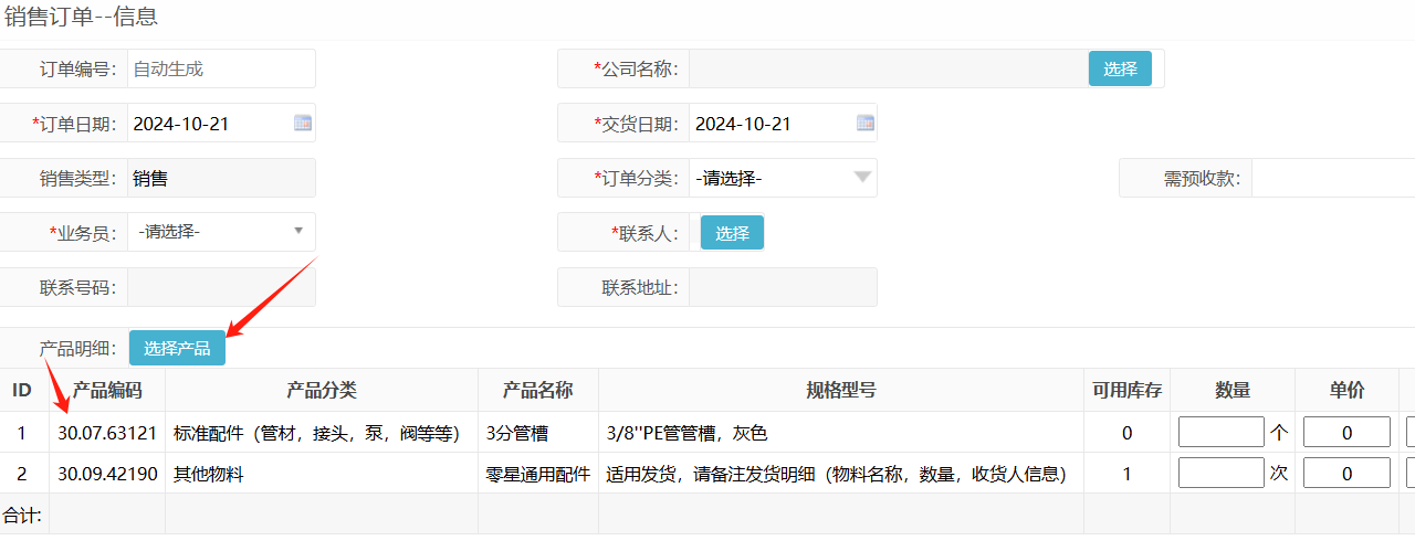 2. 点击主页新建订单,跳出浮窗,填入已读取的字段及选择产品(物料编号)填写数量和价格,当第三行订单号=前一行订单号时候,循环选择产品,否则点击订单保存订单浮窗按钮,循环读取下一行EXCEL内容,重新跳回主页新建订单产生浮窗。一次类推直到循环读取EXCEL表格结束保存订单浮窗。
