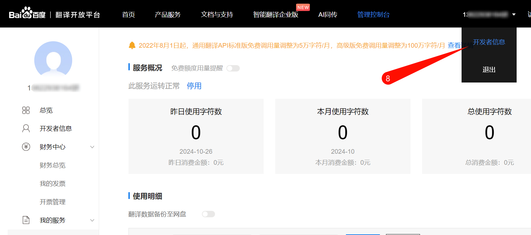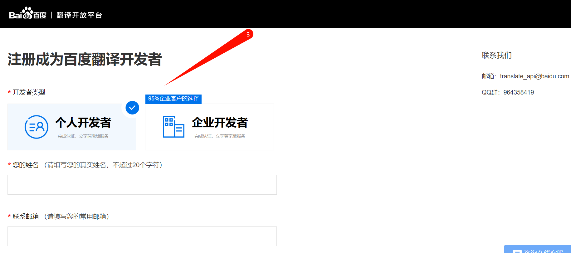 注册方式:https://api.fanyi.baidu.com/api/trans/product/prodinfo,步骤也很简单,具体如下:
