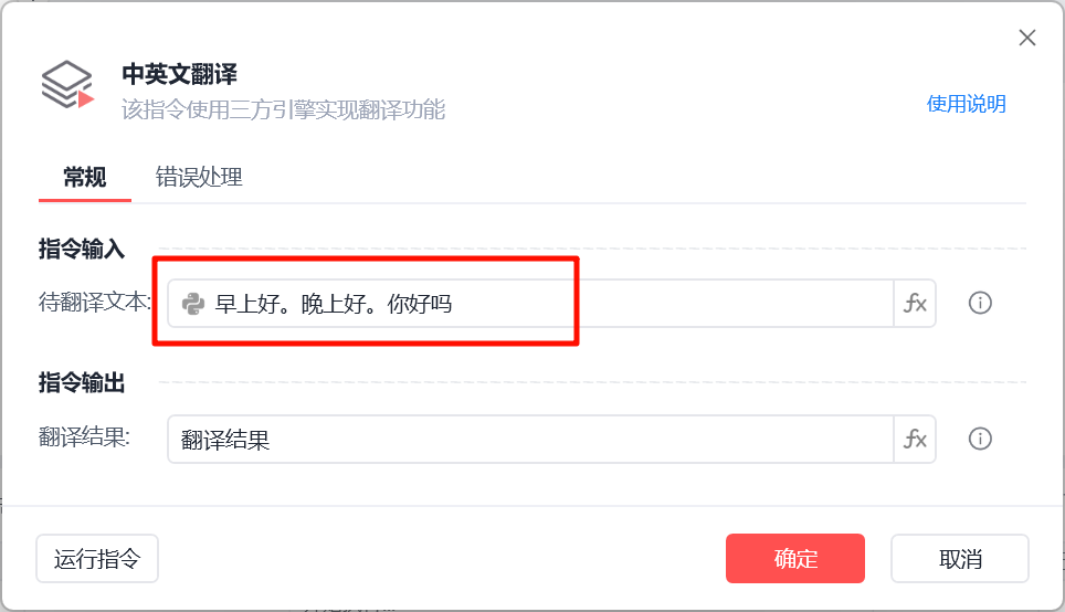 通过问题反馈以及询问指令开发老师,老师表示不是很想在官方指令里进行改动,因为怕传入的语句里面万一真的有特殊字符,就是说即使改了但是如果出现特殊字符作为符号也还是会出现同样的问题,所以他给我们的方案是对将要翻译的文本进行预处理。另外,该指令调用的是有道的接口,本来就是白嫖的,所以对调用次数有限制,调用几次就不行了,因此小伙伴如果有大量文本翻译的需求时要注意这点。