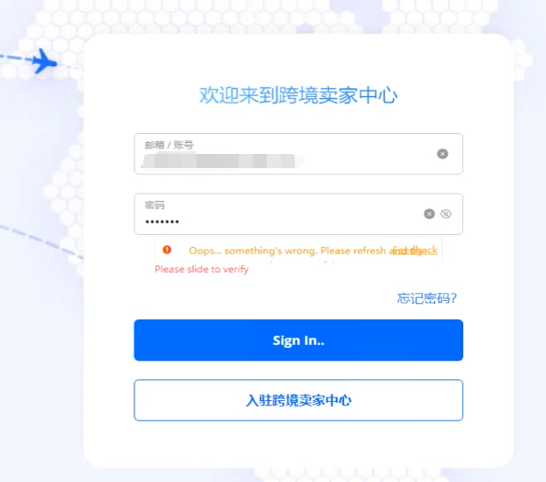 我设置了一次验证不通过,再来一次,但会一直卡在这里,每次拖拽完后就会显示错误,手动拖就不会出错,这个页面是速卖通的登录界面