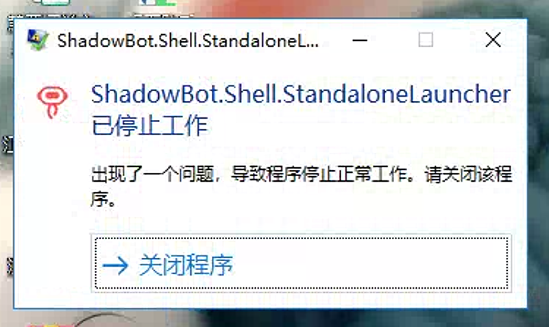 win10部署的影刀5.16单机版,之前正常使用的,今天双击图标,突然提示:ShadowBot.Shell.StandaloneLauncher已停止工作