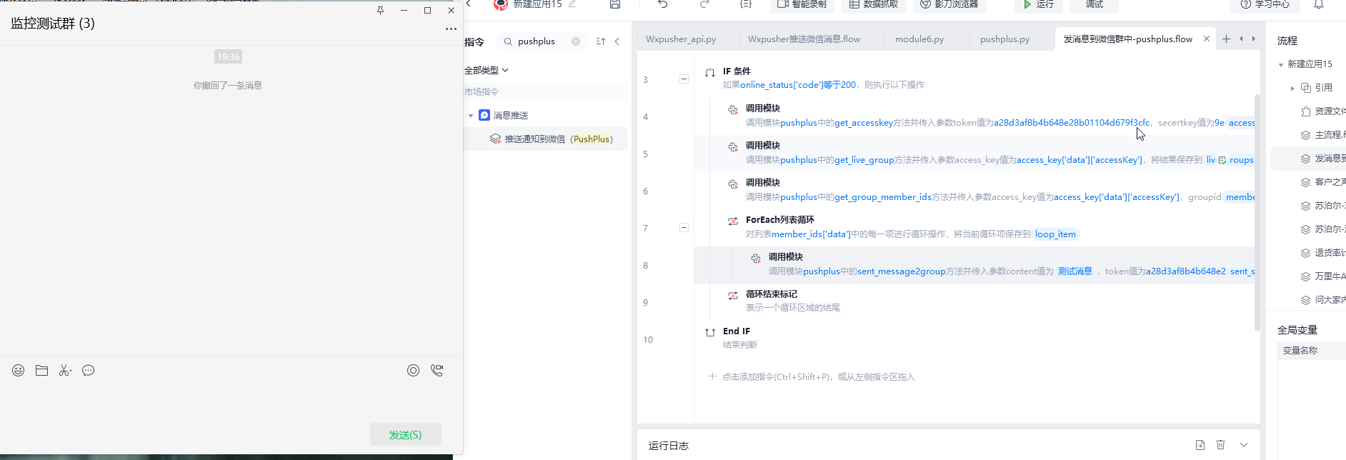 微信作为当下应用最为广泛的社交软件,不仅可以运用在交友方面,在实际的业务当中也是有比较多的使用,比如像跨境业务中三方物流的对接,有些跨部门的工作也会用到微信对接等。如果要在这些业务中加入RPA流程的话,有一个比较重要的点就是如何将消息(应用状态消息、业务消息等)通过RPA的方式来传递到微信中。本文会介绍一些可以实现微信消息通知功能的小插件,相对于直接用影刀操作微信异常的概率会小一些。
