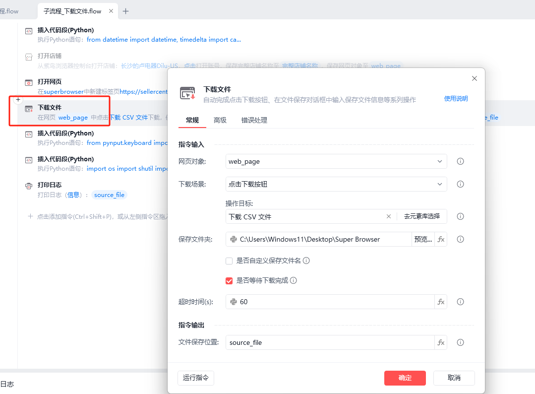 错误信息: 执行 下载文件 时出错: Message:未找到浏览器下载菜单窗口,请前往浏览器的“设置-下载”界面,启用“下载开始时显示下载菜单”选项。