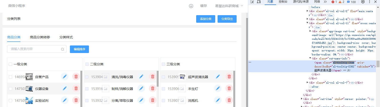 有个小问题求助大家,我想给公司的小程序后台批量上传图片,需要遍历每一个分类的名称然后传递给点击元素,点击相应的分类进去上传图片,可是三级分类一直获取不到文本信息,我想问下应该如何操作。