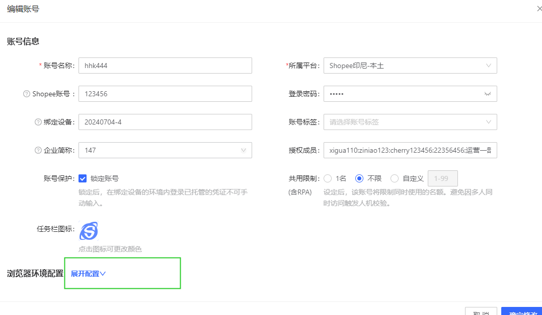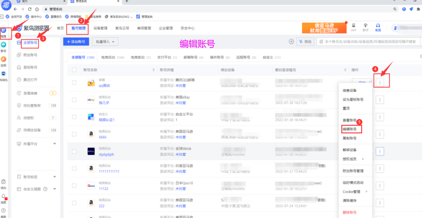 如果权限不够,第四步点击后会只显示几项内容,并没有编辑账号选项。