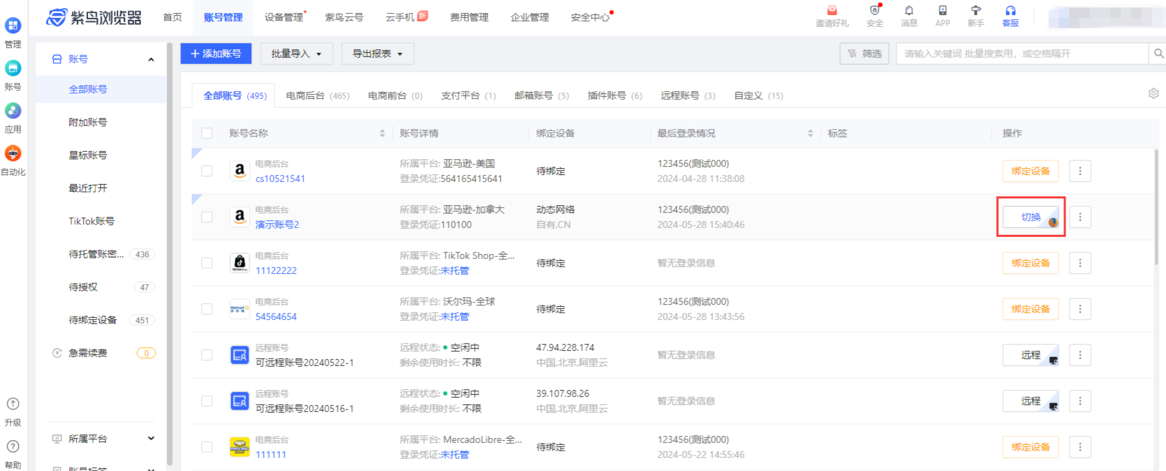 我们可以到紫鸟浏览器切换店铺页面看下这个切换按钮右下角的小标志是Chrome浏览器还是firefox浏览器(图示为firefox浏览器)