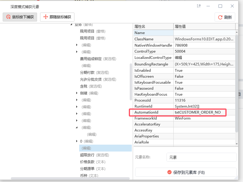 通过升读模式捕获元素,可以发现AutomationId可以作为唯一标识,尝试用AutomationId作属性条件定位,但并未生效。