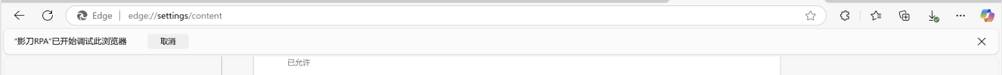 有没有办法关闭edge浏览器的“影刀RPA已开始调试此浏览器”这个提醒?求解决