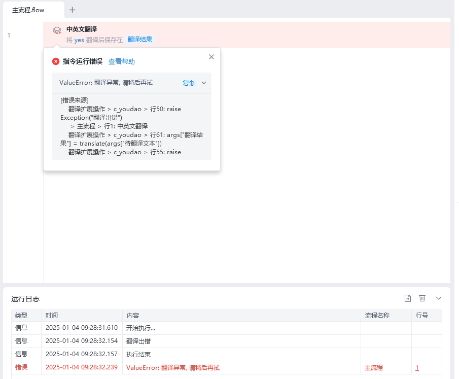ValueError: 翻译异常, 请稍后再试